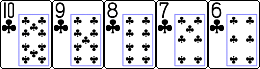 5) Renk: 10c-Qc-6c-7c-9c (sırasız ama aynı işaretli 5 kart; eşitlik durumunda sıra ile kart değerlerinin büyüklüğü kazananı belirler, aynı ise işaretin üstünlüğüne bakılır).