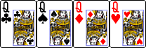 4) Kare (4’lü): Qc-Qs-Qd-Qh-6c (eşit değerli 4 kart ve ek bir kart; kart değerinin büyüklüğü kazananı belirler).